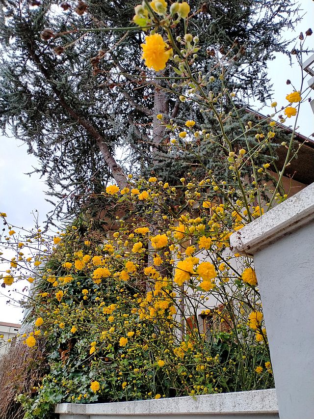Z radosnych informacji. Powrócił na stare śmieci, po wygnaniu zeszłorocznym, kiedy to ścięto za murem drzewo na którym mieszkał nasz kos. Od kilku dni wyśpiewuje za tymże murem. Są tam jeszcze inne drzewa, a może odrosły gałązki z tamtego starego. Nie wiem, bo nie widać.