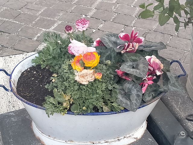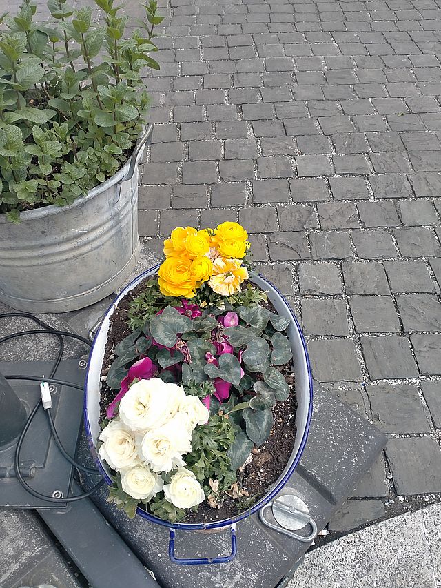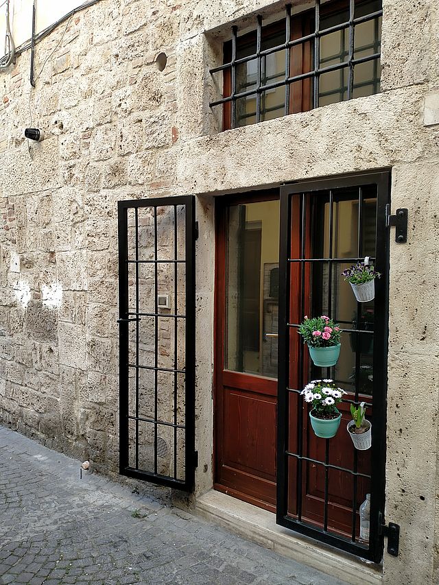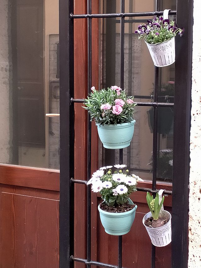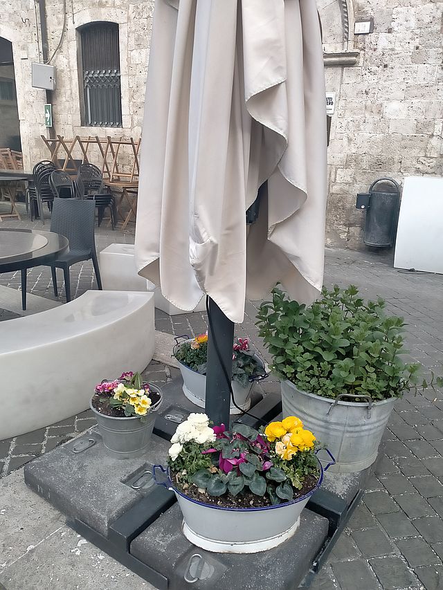 A co w Ascoli? Pojawiają się kolejne doniczki na kamiennych uliczkach.