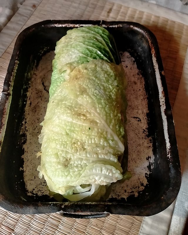 -„bakaliowcem” pieczonym w formie motyla, którego wierzch pięknie dekoruje pisakami jadalnymi moja synowa,