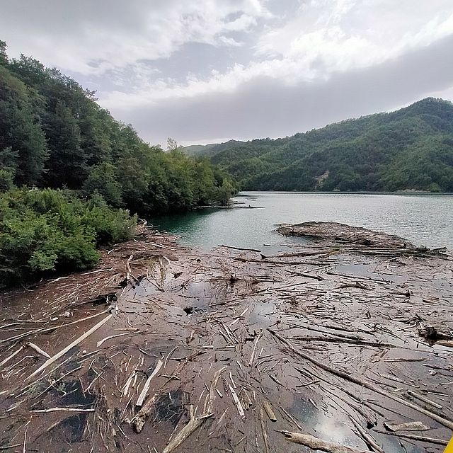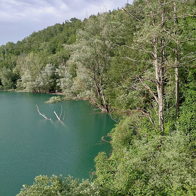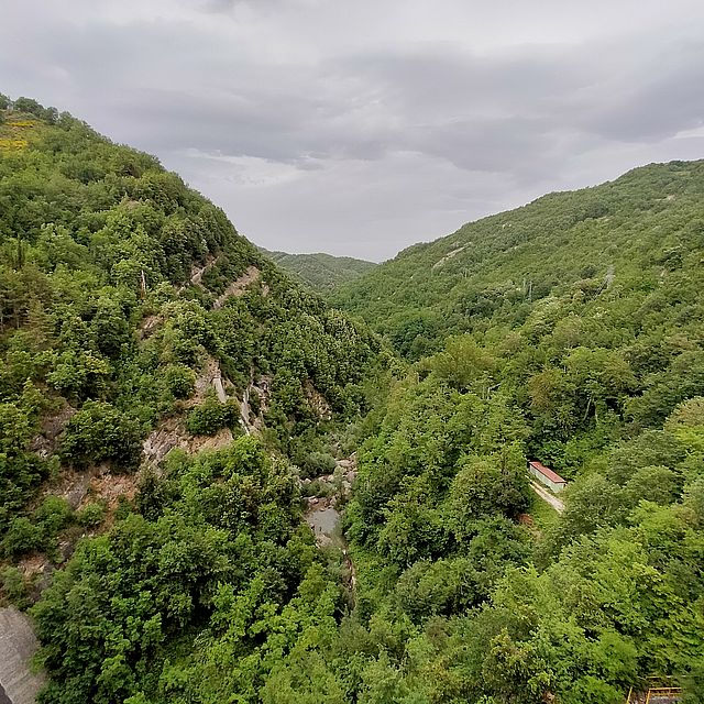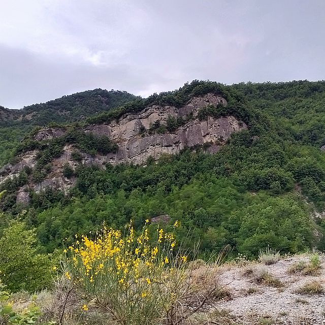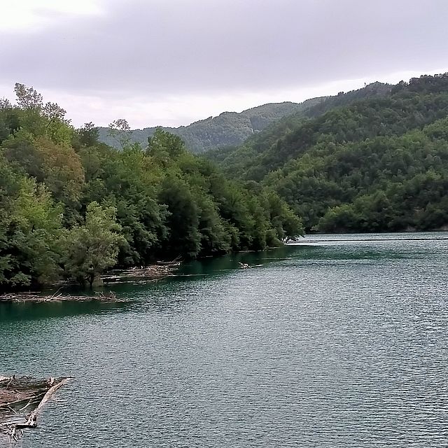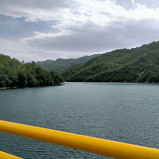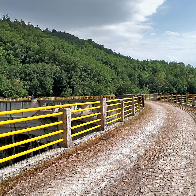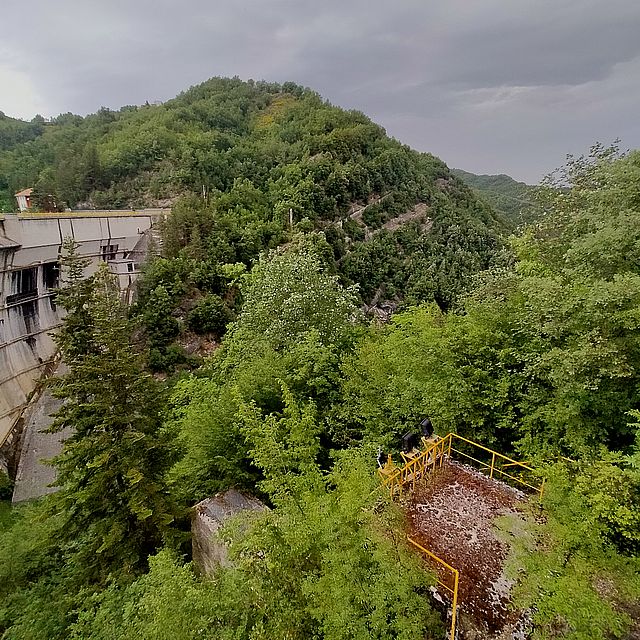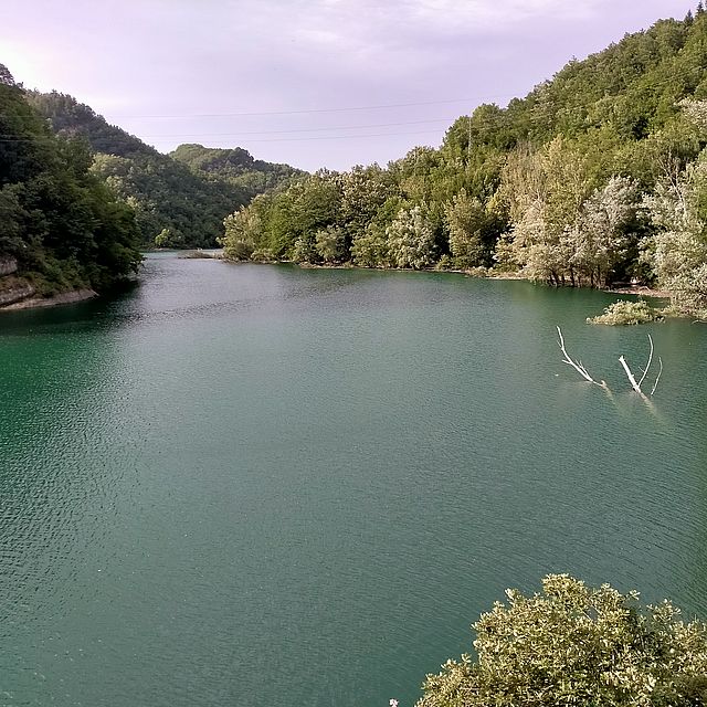Potem mieliśmy wahanie przy drogowskazie do Borgo Duchów, ale, że było położone na 1400 m zrezygnowaliśmy. i duchy chyba maczały palce w kolejnym zjeździe z drogi głównej. Przejechaliśmy przez most na drugą stronę zalewu do Rocca Monte Calvio.