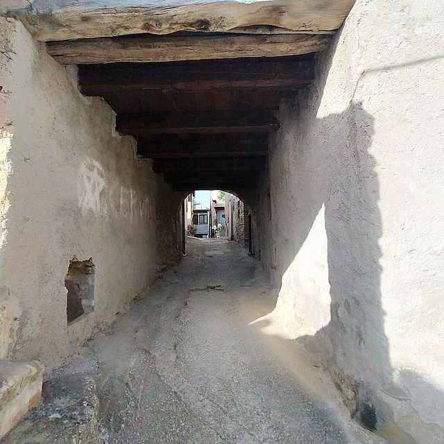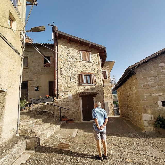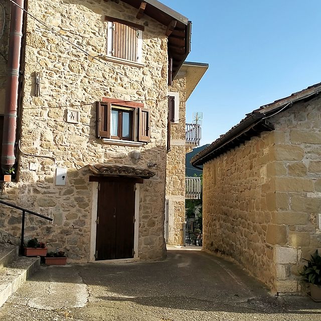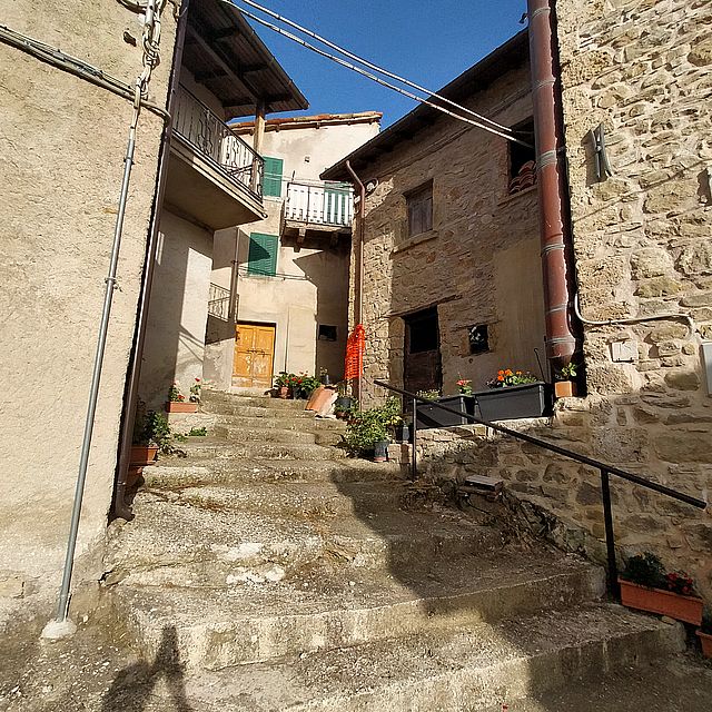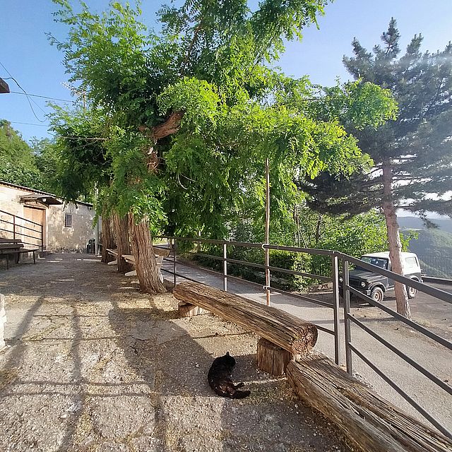 Ani zawrócić, ani jechać dalej. V. jednak jest świetnym kierowcą, a ja nie pokazywałam, że mam tę duszę na ramieniu. I tak powolutku wywindowaliśmy się na szczyt. A tam kolejne Borgo. San Gregorio. Nawet jakieś święto było, bo sporo osób. V. chciał zrobić postój, ale ja kiedy usłyszałam, że jest inna wygodna droga wolałam jechać dalej. Rzeczywiście po tej drodze, którą dotarliśmy do San Gregorio każda wydawała się autostradą. Byliśmy dobrze ponad 1000 m. Za to teraz zjeżdżaliśmy w miarę wygodnie i nawet zrobiliśmy postój w… kolejnej miejscowości. Tutaj czas sie zatrzymał. Oto Cervara.