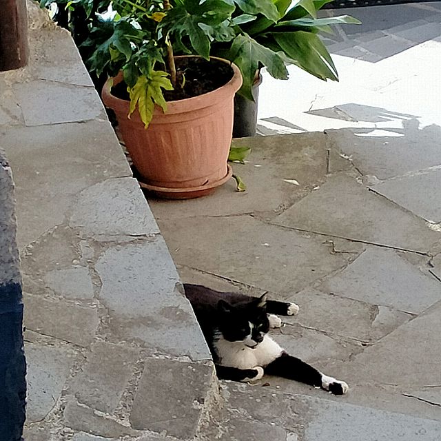Z tymi Włochami bywa zabawnie. Nie siedzieliśmy do końca mimo parasola ogrodowego. Jednak Hannibal spalał. W słońcu termometry pokazywały 40 stopni.