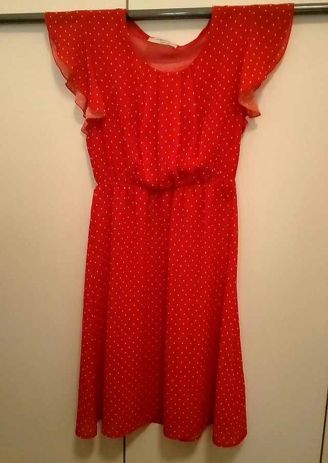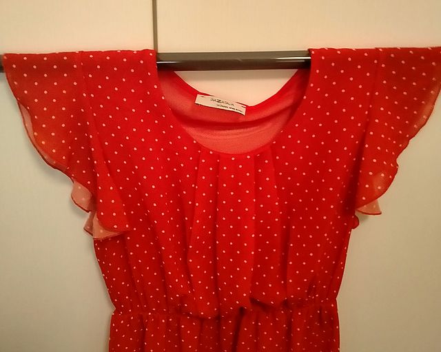 Za to dziś na porannym spacerze z V. kupiłam sobie sukieneczkę. Czerwoną w białe kropki. Proszę… Taka moja zachcianka.