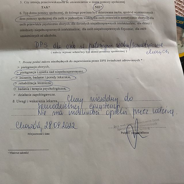 | Dzień dobry. Zwracam się do państwa z pytaniem w jaki sposób wyobraża sobie Oddział Rehabilitacji Szpitala Powiatowego w Świętochłowicach – Piaśniki opiekę nad pacjentem mieszkającym samym. bo osoba przebywająca również w mieszkaniu pod tym adresem jest prawnie dla niego osobą obcą. .Załączam zdjęcie z wypisu szpitalnego, w którym zaznaczono, że mieszka sam i, ze zgłoszono do opieki społecznej w celu pomocy. Jestem rozwiedzioną z pacjentem osiem lat temu, jednak przebywając w tym momencie w Polsce nie potrafię nie udzielić mu pomocy. Bo prawda jest taka, że został wypisany do domu, bez kodu na recepty i dopiero po uzyskaniu jego pełnomocnictwa mogłam zorganizować recepty, aby przez okres weekendu leczenie farmakologiczne było kontynuowane. Próbowałam uzyskać kod recepty telefonicznie, jednak zostałam zbyta, a na pytanie, co pacjent ma w tej sytuacji zrobić usłyszałam:- -Pójść do swojej poradni. Zaiste dobry żart. Pacjent po udarze dla którego nawet pójście samodzielne do toalety jest niewykonalne ( ma pampersy) ma iść do poradni po receptę. Odmówiono mi również przesłania mailem na adres MOPS u zlecenia na pomoc przy codziennych czynnościach. Uważam takie postępowanie za skandaliczne i pismo, to traktuje jako skargę na zachowanie pracowników Oddziału Rehabilitacji w tym jej ordynatora dr. lek. med. Barbary Mikłasz-Łochockiej, która nie miała zamiaru poświęcić czasu na rozmowę telefoniczną przekładając rozmowę na poniedziałek. A do poniedziałku od piątku rano chory najlepiej, żeby nie miał potrzeb fizjologicznych. Kilka dni bez lekarstw i higieny oraz jedzenia czy picia pewnie nie miałoby żadnych skutków ubocznych. Załączam plik ze zdjęciem z wypisu Jana K. zam…… Łączę wyrazy szacunku Lucyna Kleinert zamieszkała Włochy Horror zaczął się za dwadzieścia dziewiąta, kiedy dwóch pracowników medycznych wniosło eksa z wózkiem inwalidzkim i rzeczami do góry, nadmieniając, że nie mają, co do tych rzeczy obowiązku wnoszenia. Przypominam trzecie piętro bez windy. Wózek stanął w przedpokoju skutecznie w tym momencie blokując drzwi do pokoju Agi. Pomogli mi rozłożyć fotel, położyli eksa i pojechali. i, co teraz. Jednak człowiek i to chory. Zerknęłam do wypisu. Zalecenia farmakologiczne bez recept czy kodu aptecznego. Poszłam do MOPS u złożyć dokumenty i przy okazji zapytać o opiekę. Jedyna dobra wiadomość, że papierologicznie wszystko już złożone i w poniedziałek będzie wywiad . A, co z opieką? Szpital nie był uprzejmy wystawić zlecenia na tę opiekę. Jednak wystarczyło wysłać mailem do MOPS u zlecenie, a sprawa była do ogarnięcia. Jak wiecie przekraczało to chęci szpitala. Drugą sprawę, czyli lekarstw udało mi się załatwić czekając sporo czasu pod gabinetem lekarskim na swoją kolejkę. W międzyczasie musiałam wrócić do domu po pisemną zgodę eksa na moją reprezentację w przychodni jego osoby. Bez tego nic bym nie załatwiła. W tym zestawie farmakologicznym są zastrzyki. Jak wiadomo ja umiem je robić, ale w tym przypadku nie mam zamiaru tego robić. Mam numer do opieki weekendowej czy świątecznej i będę tam dzwonić wieczorem po osobę, która to zrobi dziś, jutro i w niedzielę. Wózek w podjeździe do toalety absolutnie się nie sprawdza. Organizujemy balkonik i kaczkę. W poniedziałek spróbuję zorganizować pielęgniarkę środowiskową i długoterminową opiekę. We wtorek w nocy wyjeżdżam do Ascoli. Muszę zostawić Agnieszce jak najwięcej spraw pozałatwianych. Horror trwa. |