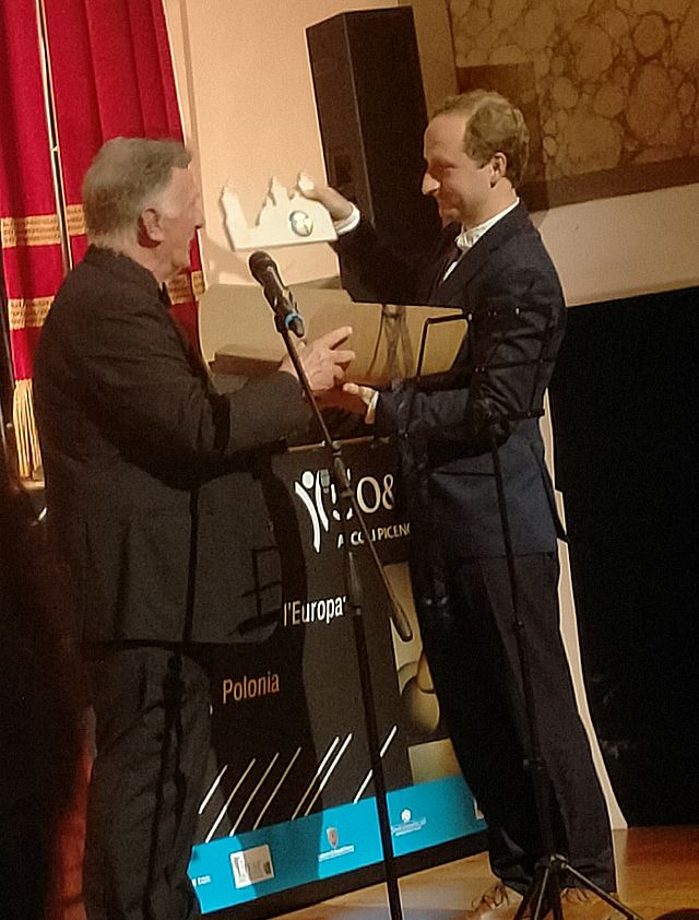 Chór „Polifonica Cento Torri” w Ascoli Piceno zaśpiewał hymn po polsku i oczywiście włoski hymn również. Niestety nie nagrało mi się wszystko. Padła mi bateria.