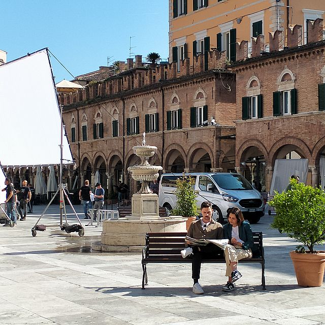 Czyli jak taką reklamę zobaczymy, to była ona nakręcona w salonie Ascoli czyli piazza del Popolo. Przy specjalnie dekoracyjnej fontannie.
