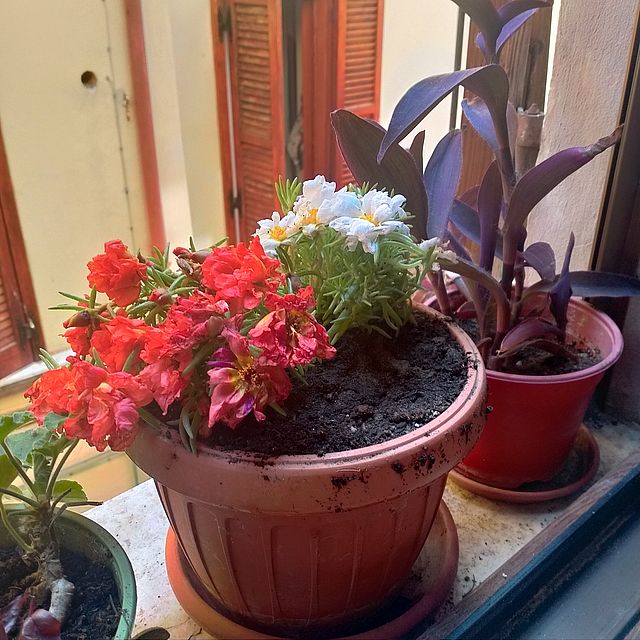 A, że na oknie nic już nie kwitnie kupiłam dwa takie kwiatki w barwach prawie narodowych i wsadziłam do jednej sporej doniczki.