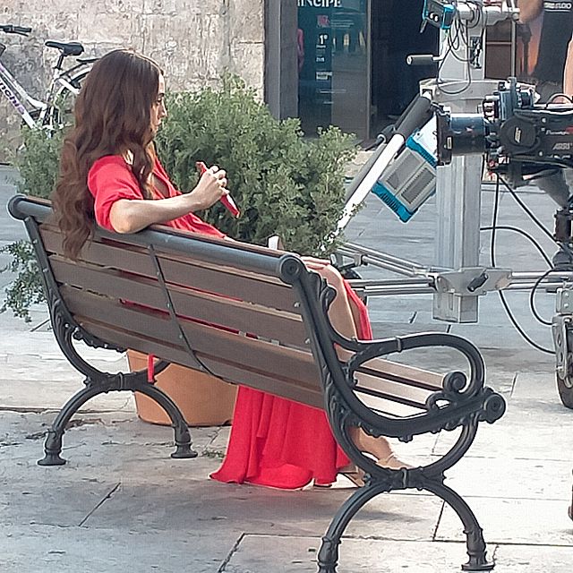 A na placu filmowanie czy montaż reklamy trwa. Bo jak wieść gminna niesie, to będzie reklama „Ferrero rocher.” Dziś ma ławce była dziewczyna w czerwonej sukience.
