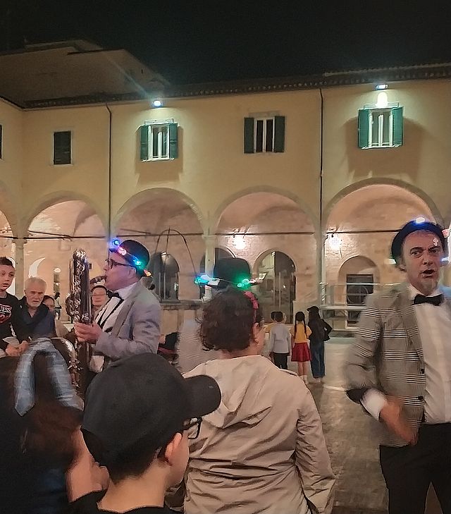 Potem zmiana placu na piazza del Popolo i po powitaniu mieszkańców i innych uczestników przez naszego burmistrza plac rozjarzył się rzeczywiście wspaniałą iluminacją.