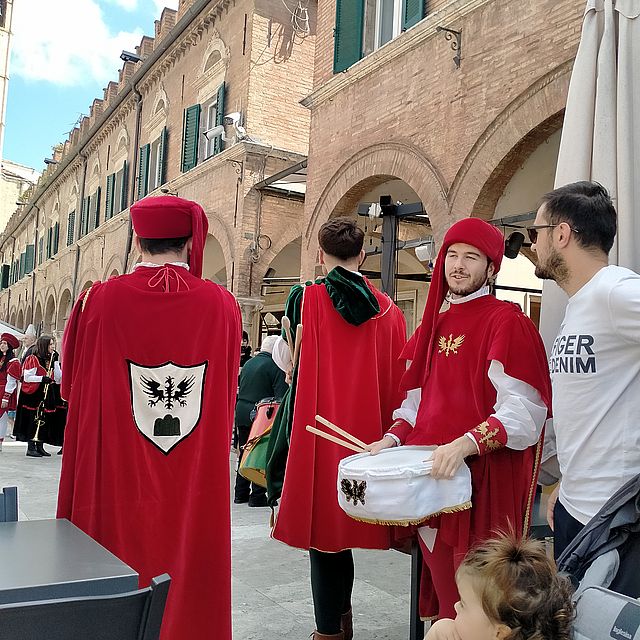 A dziś na piazza del Popolo po raz pierwszy zabrzmiał sygnał Quintana. Dla turystów, których bardzo dużo w Ascoli.