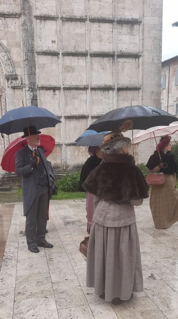 W sobotę mimo deszczu spacerowała po piazza del Popolo grupa miłośników stylu z początków XX wieku z centrum Italii zaproszona do kawiarni Meletti