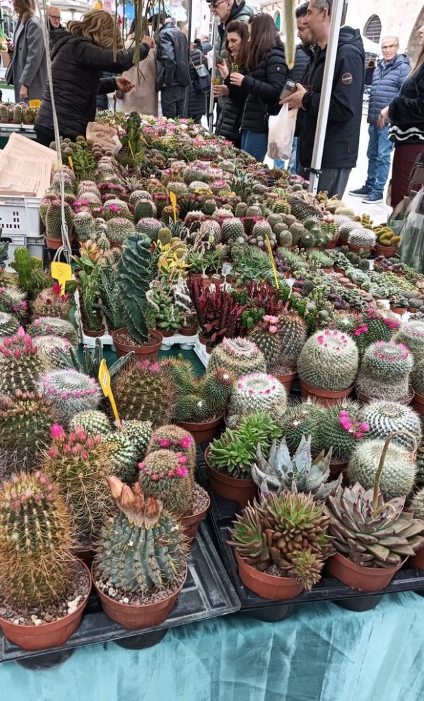 Na piazza del Popolo w niedzielę targi kwiatowe. Miłośnicy kaktusów jak moja przyjaciółka mieli raj.