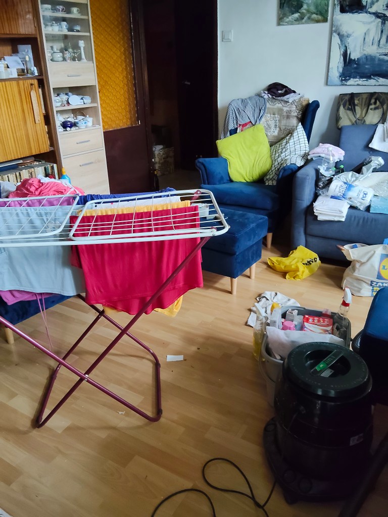 Przerzedza się powoli i widać podłogę . Dajesz radę . Jeszcze trochę i wszystko znajdzie swoje miejsce. Pamiętam ile mi zajmowało sprzątanie po remontach. Nie przemęczaj się , dzień czy dwa nie zrobią różnicy po tylu tygodniach. Buziaki!
